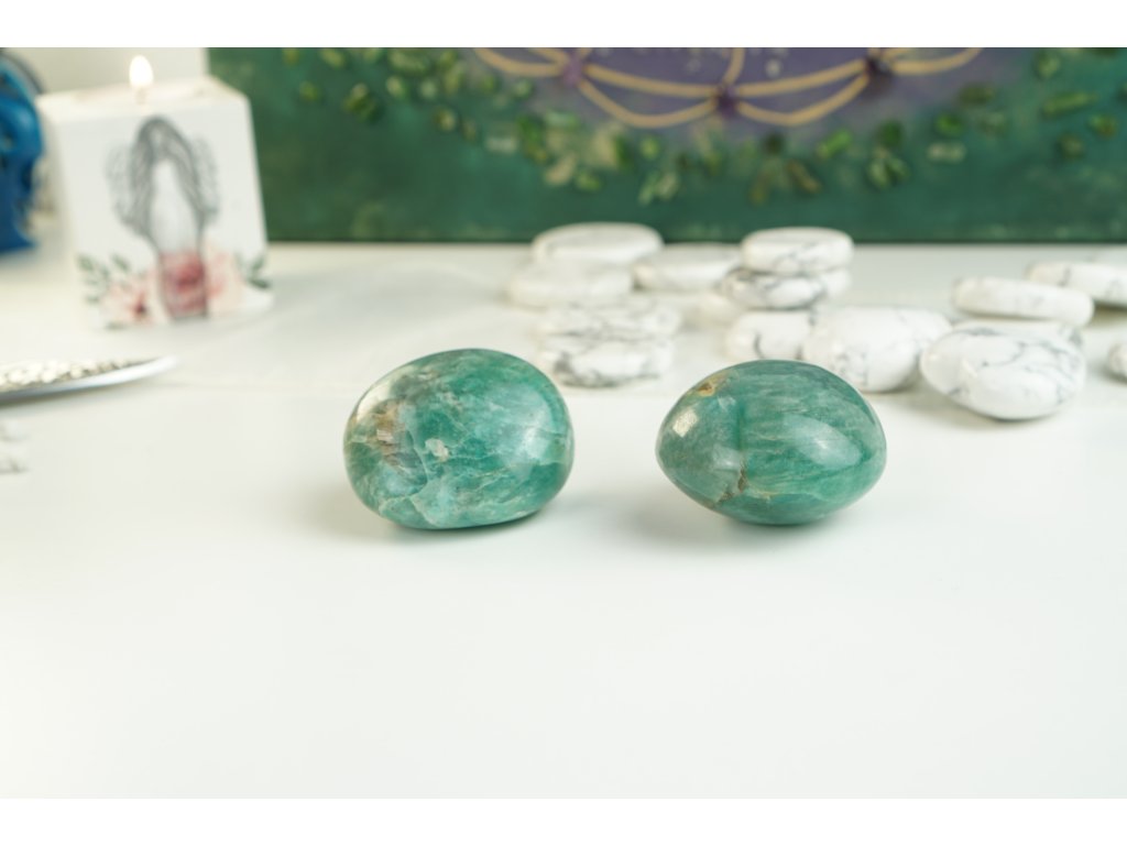 Tento nádherný Amazonit ve tvaru vejce má mimořádně uklidňující účinky. Blokuje geopatogenní zóny a chrání před elektromagnetickým zářením.