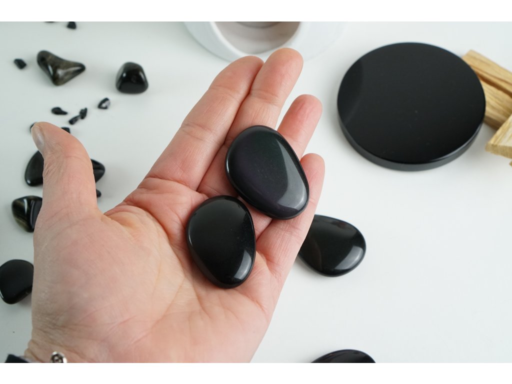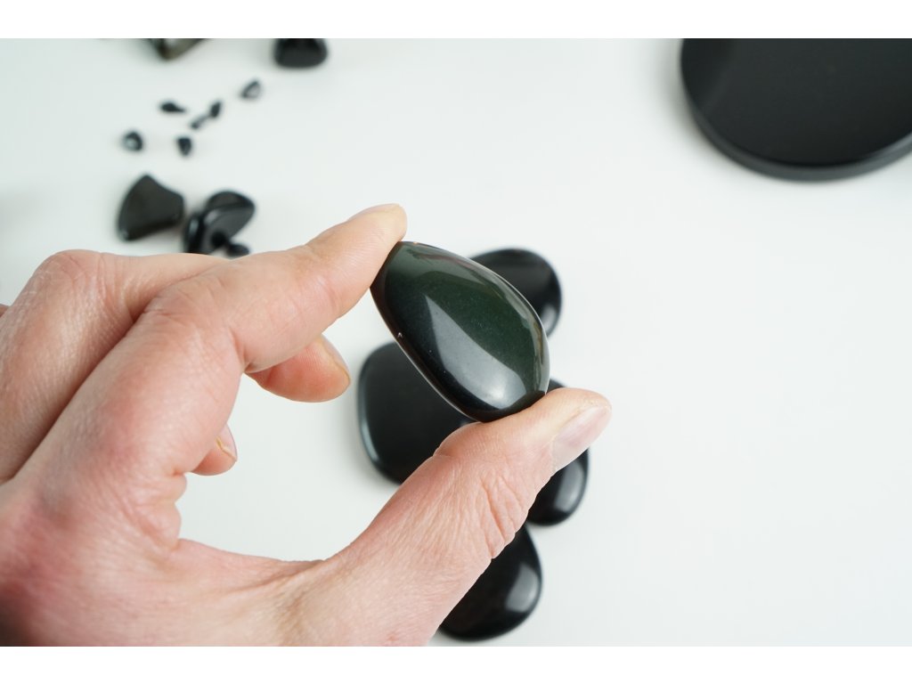 Duhový obsidián je fascinující kámen, který se vyznačuje krásnými barevnými odlesky, jež se mění v závislosti na úhlu pohledu. Nejvíce jsou vidět na denním světle a slunci. Tento minerál je považován za kámen pro vyrovnání emocí a harmonizace čaker. Pomáhá uvolnit negativní energie a podporuje duchovní rovnováhu. Černý obsidián je silně ochranný kámen, zaměřený na odstraňování negativních energií a uzemnění, zatímco duhový obsidián je jemnější a zaměřuje se na emocionální léčení, harmonizaci a duchovní rozvoj.