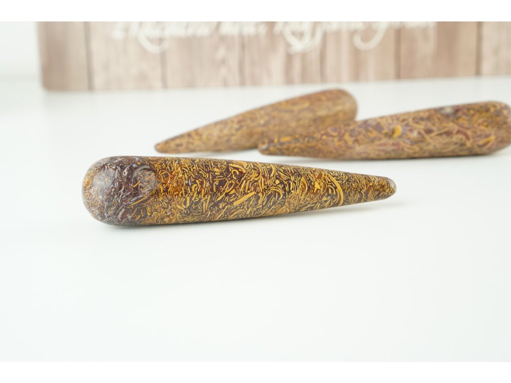 Masážní hůlka z hadího jaspisu je jedinečný přírodní nástroj pro harmonizaci těla i mysli. Tento kámen s charakteristickou kresbou připomínající hadí kůži je od pradávna spojován s ochranou, uzemněním a probuzením vnitřní síly. Díky svému silnému spojení se zemskou energií pomáhá obnovit stabilitu, rovnováhu a přirozený tok životní energie. Probouzí energii Kundalini.