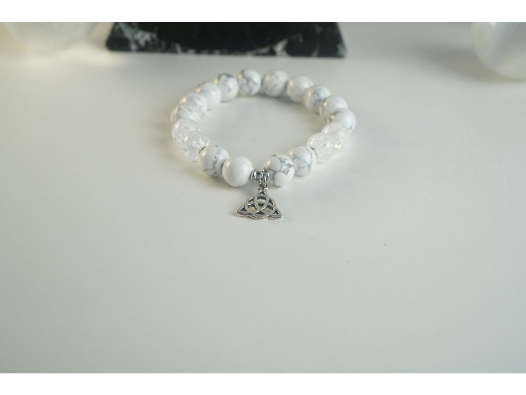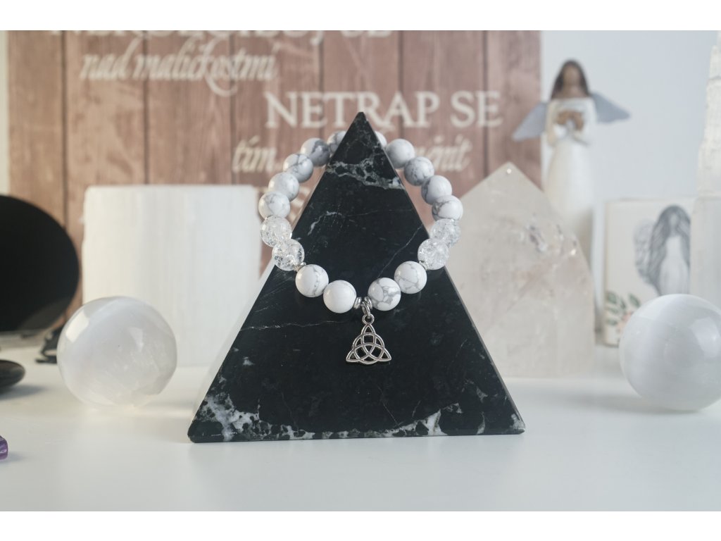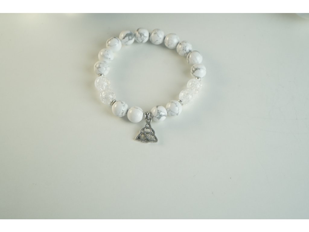 Magnezit přináší ochranu majitele. Má uklidňující a antistresové účinky. Preventivně působí na zdraví především u osob, které zrovna moc o své zdraví nepečují. Náramek z Magnezitu je doplněn Křišťálem, který ještě více zesiluje účinky minerálu. Také je obohacen o doplňky z oceli. Symbol Trinity je znakem tří základních a vzájemně propojených sil, jako například život, smrt a znovuzrození, nebo otec, matka a dítě. Duše, duch a tělo. Jedná se o "svatou trojici" .