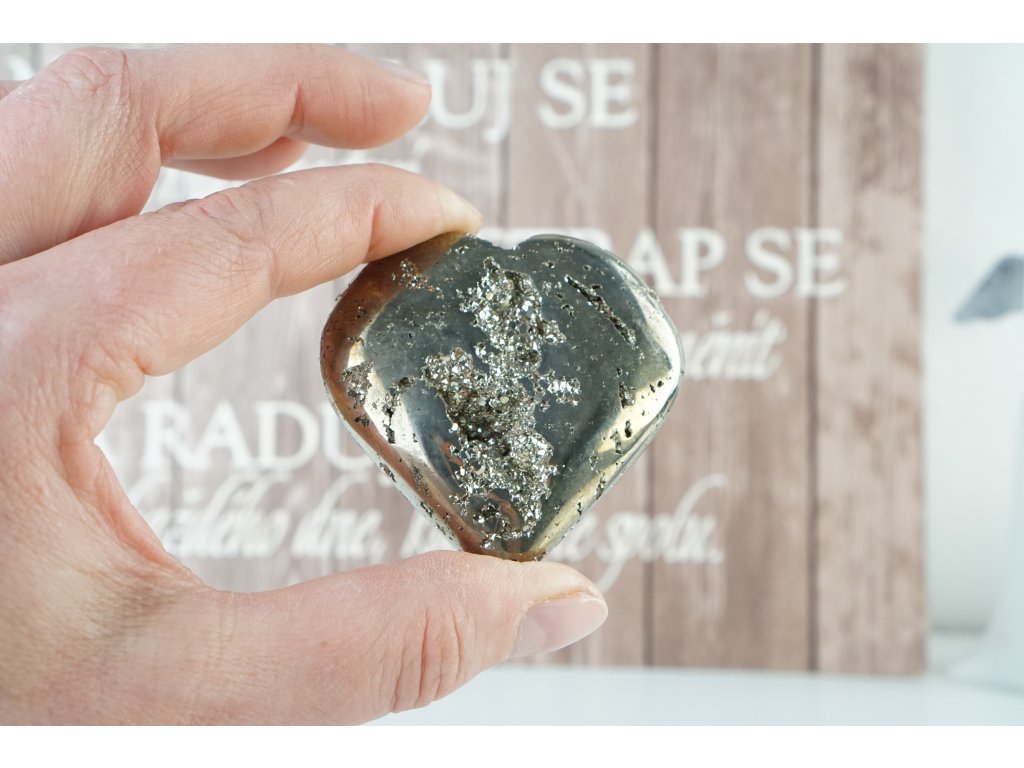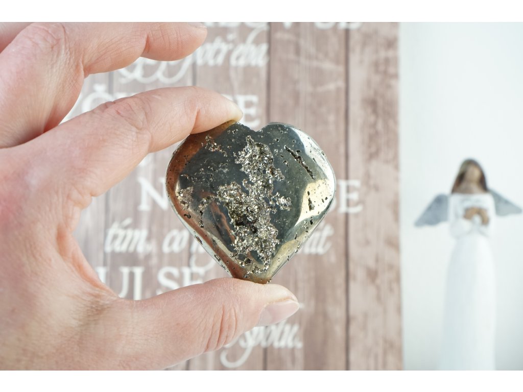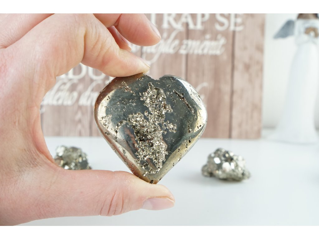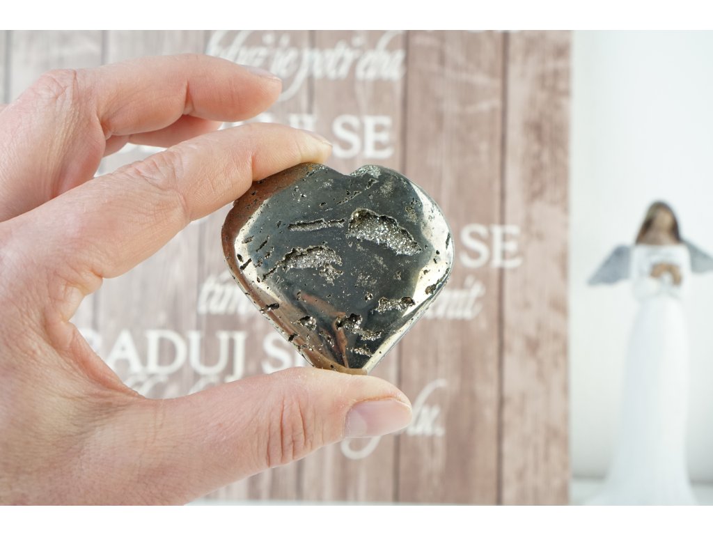Srdíčko z Pyritu můžete nosit u sebe, nebo ho mít na pracovišti i doma. Tento krásný kousek může doplnit prostor jako dekorace,